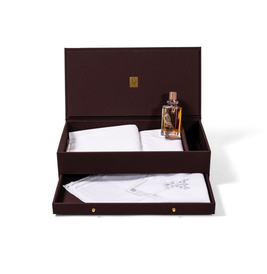 البوكس عبارة عن ١- قطعتين قماش ياباني فاخر (تكفي ثوبين) ٢- عطر فرنسي 200مل٣-غترتين يابانية تطريز وساده